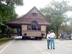 In October 2007, the historic Chicago and Northwestern railway station was relocated from Dunham Castle to the Chicago and Northwestern Railroad (now Union Pacific) tracks at Army Trail Road. The station was originally at that location, but moved to Dunham Castle during the 1940s or 1950s; the old station was converted to a horse stable. Through grants and contributions from Dunham Castle's owners, the station was moved back to its original location and is currently being restored. This building is locally called "The Depot". Additional railroad buildings were relocated to private property in the Village including one station building about ½ mile west of Munger Road on Army Trail Road.