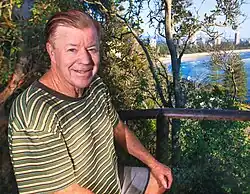 ![]() Wayne Bartholomew sits at the lookout on the headland at Burleigh Heads | |