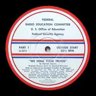 - Norman Corwin: We Hold These Truths (Combined American Networks, 15 December 1941) at the Internet Archive