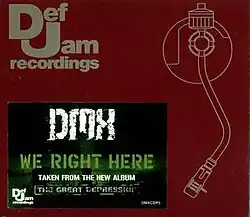 "We Right Here" is a song by American hip hop recording artist DMX, released as the first single from his fourth album The Great Depression (2001).