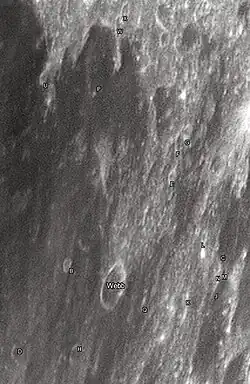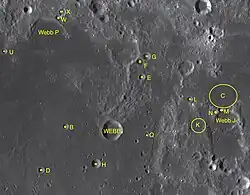 By convention these features are identified on lunar maps by placing the letter on the side of the crater midpoint that is closest to Webb.