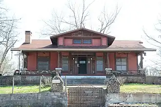 Wee Pine Knot is a historic house at 319 Spring Street in Sulphur Springs, Benton County, Arkansas. It is a single-story wood-frame structure, finished in peeled-log and half-timbered siding. The house, and an accompanying garage finished with log siding, were built in 1918-19 by Warren Prickett as a summer house. Its front porch is built out of stacked rock, including its support piers and a half-wall, and the same material is used at the base of the chimney. The interior of the house features Craftsman style woodwork and pine flooring. It is a distinctive local example of Craftsman and Rustic style architecture.[2]