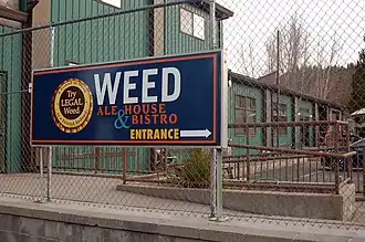 The town's name, being the same as a slang term for cannabis, has caused it to gain a small notoriety.[25] Many shops have popped up around town selling shirts and other trinkets that say "I Love Weed, California".