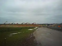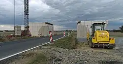 The railway embankment was largely completed over a length of around 5.5 km by early December 2009. The construction of the last section, including the connection to the Berlin–Dresden line, was carried out during a full closure of the Großenhain–Radebeul-Naundorf section for one year from mid-December 2009.