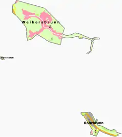 Weiberbrunn has three Ortsteile: Weibersbrunn, Echterspfahl (2.5 km southwest of the town) and Rohrbrunn (4 km southeast of Weibersbrunn).[4]: 158