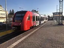 From 2015 to 2017, platforms A, B and C (tracks 1–4) were renewed and adapted for the disabled, increased to a height of 76 cm and each fitted with a passenger lift. In addition, an entrance was built from the west side.[8] This cost about €8.71 million.[8] The municipality and the district each provided €1.63 m of the costs, while the state of Baden-WÜrttemberg provided €1.88 m.[8] The renovation was also funded with €3.57 m under the federal Municipal Transport Financing Act (Gemeindeverkehrsfinanzierungsgesetz).[8]