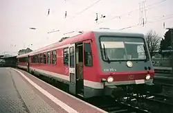 Class 628 diesel multiple unit on the Weschnitz Valley Railway on track 6 in Weinheim station (2005)