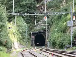 ![]() South portal of the Weissenstein Tunnel at the Oberdorf SO station | |