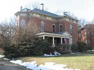Built about 1874, it is a 2+12-story, "L"-plan, Italianate brick dwelling, with a slate hipped roof, and sitting on a limestone foundation. It features segmental arched openings, paired scroll brackets, decorative rosettes, projecting bay, and a replacement porch built about 1900.[2]: 5, 8