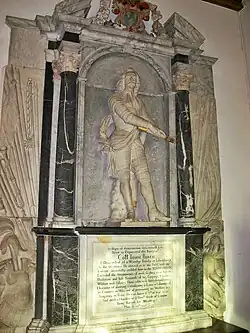 John Birch, a soldier and politician who fought for the Parliamentarian cause in the First English Civil War, sat in the House of Commons at various times from 1646. He purchased the Garnstone estate and became the Lord of the Manor, having himself elected as a Member of Parliament in 1679. He remained as such until his death in 1691, and has an impressive monument in the parish church.[68] His nephew, also called John Birch, then became Lord of the Manor and was also a borough MP when he died in 1735.
