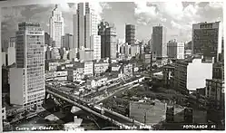 In addition, Haberkorn's photography allows the visualization of the transformations of São Paulo in the 1940s and 1950s, taking into account the changes in Brazilian infrastructure, lifestyle, and even changes in the urban design of the city. In the productions of this period, the two main factors of modernization are clear, namely verticalization, horizontal expansion, and self-mobilization. The fact that Fotolabor works for a while in the area of urban view meant that the photographer kept his attention on the primary symbolic points of the city, such as the Vale do Anhangabaú. Although his works are within a short period, each of the photographs allows the examination of the wider process of urbanization in Vale do Anhangabaú. This region was a favorite not only of Werner, but also of its competitors. They key symbols of the modernization of the city were located here, such as tall buildings and viaducts, were concentrated.[6]: p.177, 182 [7][11]: p.64, 65