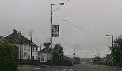 Speaking in 2014, Stephen Travers, a survivor of the Miami Showband massacre, spoke out about the erection of a banner in Moygashel's main street honouring Somerville. Travers expressed his hope that the banner would remain permanently in order to shame those who erected it and to pose a question to Moygashel parents, if they wanted their children to grow up like Somerville.[23] Travers in 2016 offered to meet those responsible for the banner to justify Somerville's glorification.[24] In 2017 a man was arrested after removing and stealing the banner.[25] A Moygashel residents' spokesman stated the people of Moygashel were in support of the banner and it would be re-erected upon its return. The spokesman also said that the banner had been erected every year previous without any incident. Relatives of Somerville's victims had requested the PSNI take down the banner.[26] However, when a new banner was later made and erected, the PSNI stated the banner was legal as no crime had been committed. This was heavily criticised by Stephen Travers. A Moygashel Residents' Association spokesman said the community were happy with the new banner, rejected the notion Somerville was a terrorist and proclaimed him as very much a part of the Protestant culture of Moygashel.[27]