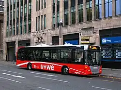 In 2012 the UWE branding was replaced by Wessex Red. The U prefix to the route numbers was replaced by a '1' (e.g. U1 became 11) to make the network appeal to the ordinary travelling public as well as students.[16]