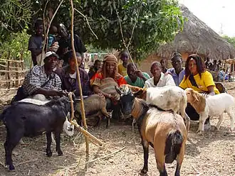 The West African Dwarf is a large and variable breed or group of breeds of domestic goat from coastal West and Central Africa, a range extending approximately from Senegal to Congo. It is characterised by achondroplasia or dwarfism, a trait that may have evolved in response to conditions in the humid forests of the area, and also by some degree of resistance to tsetse-borne trypanosomiasis or "sleeping-sickness".[3]: 106