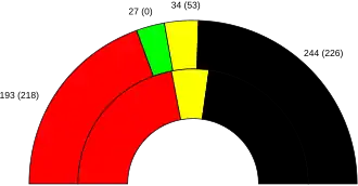 Last election 44.5%, 226 seats 42.9%, 218 seats