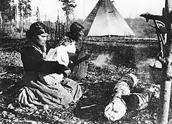 ![]() Three generations of Dunne-za women at Moberly Lake c. 1899 | |