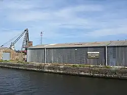 In 1810, the Weaver Navigation Company completed the Weston Canal between Frodsham and the Weston Point area of Runcorn to avoid the difficult entrance to the mouth of the River Weaver, and a dock was established at Weston Point.[1] The Old Basin is still extant but no longer accessible to shipping. The New Basin, built between 1850 and 1856, was filled in between 1963 and 1966.[2]