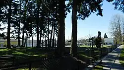 The 1-acre (0.40 ha) park contains basketball courts, a playground, and picnic areas.[2] It is known locally for its blossoming cherry trees, first planted in 1932,[3] and towering conifers.[4][5]