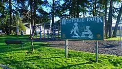 In 2021, a volunteer neighborhood group, the Friends of Westside Park, organized as a non-profit 501(c)(3)[6] and began to oversee improvements to the park.[16] That same year, the group, in collaboration with the Chehalis Foundation, were able to receive a $20,000 earmark for the park from the Chehalis City Council as a beginning funding effort for future renovations.[2] An additional $95,000 in capital was added in 2023. Considered the first of potentially three phases of renovations, the $115,000 total funding is to aid in the purchase of new playground equipment, the construction of a perimeter fence, and to upgrade the sidewalks and parking areas to be in compliance with the Americans with Disabilities Act (ADA).[17]