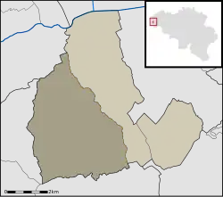 The parish and the church were named after Saint Martin of Tours. The Saint Martin Church (Dutch: Sint-Martinuskerk) is of late Gothic style with Romanesque components, and is a protected building.