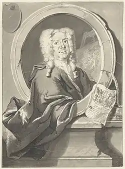 ![]() Jacob Campo Weyerman aged 48, drawing by Cornelis Troost | |