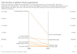 Whaling is a method of hunting whales for their meat, oil and blubber. The hunting of whales on an industrial scale began in the 17th century and into the 20th century, and as a result of the quantities caught many whales became endangered species. The International Whaling Commission (IWC) banned commercial whaling in 1986 to increase the remaining whale population in the seas.