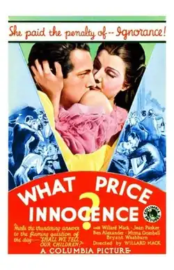 What Price Innocence? is a 1933 American pre-Code drama film written and directed by, and co-starring, Willard Mack. Produced on a low budget for Columbia Pictures, it has been classed as an exploitation film and "sex hygiene film" because it touches on teenage pregnancy and morality in a didactic manner.[1] The film features a teenaged Betty Grable in an early film role.