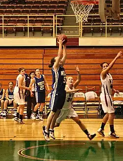 Wheaton Lyons women's basketball team (in blue) v the WPI Engineers