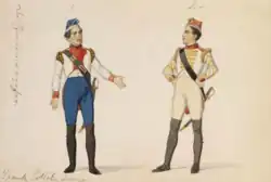 ![]() Costume drawing by Edvard Lehmann for the play: Two Spanish soldiers | |