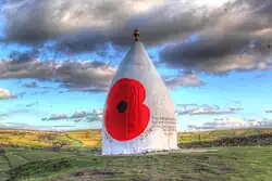 White Nancy is a structure at the top of Kerridge Hill, overlooking Bollington, Cheshire, England. Since 1966 it has been recorded in the National Heritage List for England (NHLE) as a designated Grade II listed building.[1] Its profile forms the logo for the town of Bollington.[2][3]