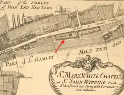 According to John Strype (1720) the neighbourhood was a busy one, with good inns for travellers in Whitechapel[3] and good houses for sea captains in Mile End.[4] Even so, said Strype, the Whitechapel Road was "pestered" by illegally built, poor quality dwellings.[5]