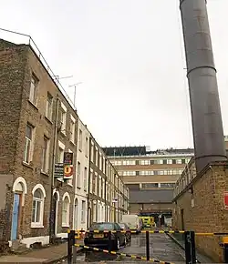 Post-medieval deposits, ashy fill deposits were recorded below the cellars of former terrace houses facing Whitechapel Road. Extensive fill deposits may indicate quarrying, which took place after a successful petition to flatten the Mount fort by the hospital authorities at the end of the 18th century. There is no trace of a former burial ground on the site prior to that date and no disturbed graves or disarticulated human bone was recovered. A rise in the ground level to a metre above that of the surrounding Whitechapel and New Roads indicates a topographic replacement of the Mount as an elevated feature and the same rise is reflected along the 19th century Mount Terrace. No significant archaeological deposits were observed.[54][55]