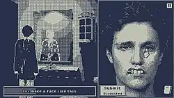 Critics praised the innovative approach to interaction through manipulating facial expressions. Rock Paper Shotgun noted the mechanic was "both incredibly clever and incredibly creepy", with the "face-pulling (proving) to be both a clever part of the plot and a genuine source of tension."[8] Calum Fraser of Alpha Beta Gamer noted the game was "very unique" and "the facial expression manipulation isn't just a gimmick - it's an integral part of the gameplay that has a big effect on how others react to you."[9] Cass Marshall of Polygon stated she "had fun yanking William's face into increasingly silly expressions...there's nothing quite like the joy of having him bare his teeth and pull his eyelids back and have it register as a friendly smile."[10] Joel Couture of Indie Games Plus stated the "conversational tool" was "unique" and "endlessly enjoyable", although noting the feature "did sometimes break the mood of the game just a tiny bit".[11]