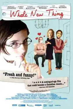Whole New Thing is a 2005 Canadian drama film directed by Amnon Buchbinder.[1] The film is a coming-of-age narrative about a 13-year-old boy, Emerson Thorsen (played by Aaron Webber) who lives in an isolated straw-bale house with his counter-cultural parents, Rog (Robert Joy) and Kaya (Rebecca Jenkins). However, when Kaya decides that homeschooling provides too little structure for Emerson, she enrolls him at the local middle-school under the tuition of 43-year-old Don Grant (Daniel MacIvor). Emerson, despite displaying a developed intellectual approach to sexuality, discovers the problems that come with developing a crush, and the taboo of this crush being his male teacher.[2]