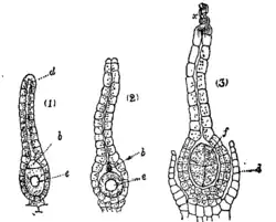 When a haploid spore or gemmae lands on suitable surface, it will germinate into a haploid gametophytic generation. First it will grow into a protonematal stage, where rhizoids and protonematal filaments develop and anchor to the substratum. Then, leafy gametophytic shoots develop. When the gametophyte is mature, it will either produce antheridia or archegonia, as it is dioicous and thus only produces either female or male structures on one plant.[9]