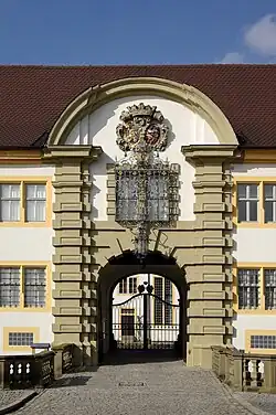 In 1701, Maria Eleonore von Dernbach married her cousin Rudolf Franz Erwein von Schönborn and the estate passed into the von Schönborn family. Rudolf Franz Erwein von Schönborn, who took over control in 1704, built the castle in its current form and converted it into the new residence of the Counts.[4] In addition to being a diplomat, he was an accomplished composer and amateur cellist.[5]