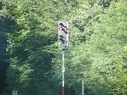 It was once of great importance as a timber loading point. The tracks required for this have since been dismantled, apart from one loading track. The most important freight customer at the station was the West Palatinate timber industry, for which one of the two sidings was responsible. In the 1980s, the station still had a loading track including a loading ramp, two sidings and mechanical signals. The latter were dismantled in 1989. The station building is a listed building.[46] It no longer has any significance for rail operations and has not been used for any other purpose since then.[47]