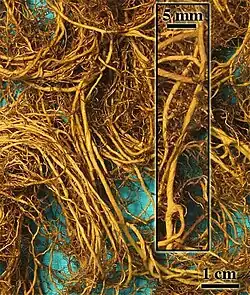 It often grows high in trees and can thus be difficult to harvest. The most common way to collect the lichen is by twisting the lichen around the end of a long stick (which is sometimes hooked) and then pulling the lichen down off the tree.[4][35][36] This lichen-collecting stick is called a txipmn in the Okanagan language.[4][35] The lichen can be collected at any time of year, but it is important to choose the right type of lichen. Some specimens are toxic due to vulpinic acid. There are numerous other species of Bryoria that look very similar, but are bitter and mildly toxic.[4][37] The species of tree on which the lichen is growing[7][31][38] and the general location of that tree[35][39] are both thought to be important factors for determining if it is the right type of lichen to eat, but not everyone agrees on which locations and tree species are better. Many people taste the lichen first to make sure that it isn't bitter,[4][35][40] and some people choose the lichens that are darker coloured.[4][32]