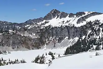 The Alpine Lakes Wilderness features some of the most rugged topography in the Cascade Range with craggy peaks and ridges, deep glacial valleys, and granite walls spotted with over 700 mountain lakes.[5] Geological events occurring many years ago created the diverse topography and drastic elevation changes over the Cascade Range leading to the various climate differences.