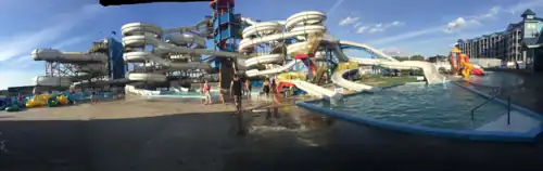 | Playground | A children's playground containing several small waterslides that drop into a large pool. |