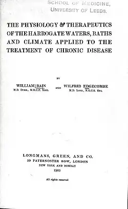- ^ Edgecombe, Wilfrid; Bain, William (1905). The Physiology and Therapeutics of the Harrogate Waters, Baths and Climate Applied to the Treatment of Chronic Disease. London: Longmans, Green & Co. Retrieved 21 July 2025 – via Internet Archive.