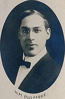 William E. Dulmage (August 17, 1883 – February 11, 1953) was a lyricist, composer, and music publisher in the first half of the twentieth century. In 1934, he composed "Tigers on Parade," which was dedicated to the Detroit Tigers and Mickey Cochrane.[1] Dulmage wrote popular songs, including some World War I publications, and composed soundtracks for television shows and films.[2]