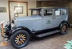 While still at Deere & Company, W.L Velie incorporated the Velie Motor Vehicle Company in 1908.[4] While he kept his tractor lines separate from the Deere line, his automobiles were marketed through Deere’s branch houses.[5] When he merged his companies in 1916, he formed the Velie Motor Company. The products produced by the company came to be known for their quality at a reasonable price.[4] By 1912, the company’s stock was valued at $1.5 million[6] and four years later it was worth $2 million.[4] Between 1913 and 1915, the Velie factory was turning out an average of 30 cars a day.[7] By 1920, the buggy business was phased out and automobile production peaked at 9,000. Estimates of how many motor vehicles Velie produced in the two decades the factory was in operation range between 75,000[8] to 300,000.[4] Velie was not the only person in the Tri-Cities, now known as the Quad Cities, who was building automobiles. At one point in the early 20th century, there were ten different makes being produced in the area.[7] Velie was the most successful.[8] The U.S. Navy chose the Velie engine along with seven others as the best automobile motors for adaptation to military use. Other winners included the Brewster, Duesenberg, Fiat, Hispano-Suiza, Isotta Fraschini, Marmon and Packard.[3] Between 1916 and 1920, the company also produced the Biltwel 12-25" tractor, which was powered by a Velie engine.