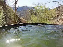 Willett Hot Springs is located in the Sespe Wilderness, North of Ojai, California.[1] This natural hot spring has been augmented by a man made collection basin. The most popular approach to the hot spring is by an approximate 11 miles (18 km) hike from the Piedra Blanca trailhead in Los Padres National Forest. Nearby Sespe Hot Springs[2] (about 3 miles (4.8 km)) has a reputation as one of the hottest springs in California.[3]