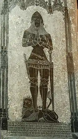 His re-used Gothic monument made circa 1405, in All Saints' Church, Laughton, Lincolnshire, is of a knight wearing the style of armour worn at the Battle of Agincourt (1415), with Gothic-style canopy, serving as ledger stone for the remains of William Dalison (died 1546), with inscription for Dalison made in imitation Gothic script below. William Dalison lived well into the Renaissance age in England when the taste for the Gothic style had long passed.