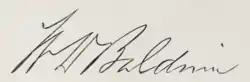 Baldwin was involved in several other business and financial enterprises in addition to his work at Otis, and held high positions in several of them,[2] including being named the Vice President of the First National Bank of Yonkers.[1] and Director of the Lincoln Trust Company and Home Insurance Company.[5] He was also politically active as a member of the Republican party,[2] but never sought to run for office, even declining a nomination by the party in 1892 for Congress;[1] although his great grandson, Michael Delavan Ward, did serve in Congress, elected for one term in 1994 in Kentucky's 3rd congressional district, in Louisville. Baldwin was a member of a number of clubs and other political and social organizations including the Chamber of Commerce, the American Geographic Society, the Union League, the Adirondack League Club, and the Lawyers', Engineers', Racquet and Tennis, and National Arts clubs.[2][3][5] He served as President of The First Church of Christ, Scientist for one term from 1910 to 1911,[6] and President of the Board of Trustees for one of its New York branch churches, Second Church of Christ, Scientist, New York.[7][8]
