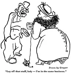 In August 1921, Bill Gropper married Gladys Oaks, herself a contributor to The Liberator. The marriage proved to be short and turbulent, marked by the couple's collaboration to produce a book of verse and drawings called Chinese White, published in 1922. (According to Whittaker Chambers, China White aced out his own submission during a national poetry contest in 1923.[13]) Early in 1924, Gladys became involved with another man and the pair decided to separate.[14]