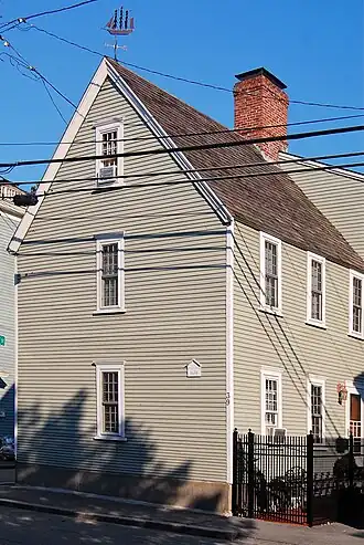 The William Murray House is a historic First Period house on the east side of Salem, Massachusetts. It is a two-story wood-frame house that consists of two distinct sections that have not always been treated as a single unit. Its construction history provides a window into 17th and 18th century building methods. The westernmost section was built c. 1688, and is three window bays wide and a single room in depth. The eastern section, also three bays wide and one room deep, was added in the late 17th or early 18th century. The western portion originally had an overhanging section of the second floor; this was altered in the early 18th century, when the roof was raised to a flatter pitch and the overhanging section was concealed by construction of a flush wall.[2]