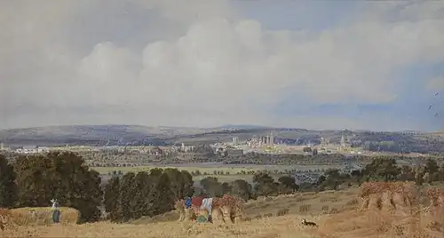 William Turner RWS (29 November 1789 – 7 August 1862) was a British painter who specialised in watercolour landscapes. He is often known as William Turner of Oxford or just Turner of Oxford to distinguish him from his contemporary, J. M. W. Turner (known as William). Many of Turner's paintings depicted the countryside around Oxford.[1] One of his best known pictures is a view of the city of Oxford from Hinksey Hill.[1]