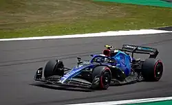 The Williams FW44 is a Formula One racing car designed and constructed by Williams that competed in the 2022 Formula One World Championship. The car was driven by Nicholas Latifi and Alexander Albon, who were in their third and first years with the team respectively. Nyck de Vries participated in the Italian Grand Prix in the FW44, replacing Albon due to the Thai driver suffering appendicitis.[2] The chassis is Williams' first car under the 2022 technical regulations, and their first to be developed wholly under new owners, Dorilton Capital, with Jost Capito at the helm.[3]